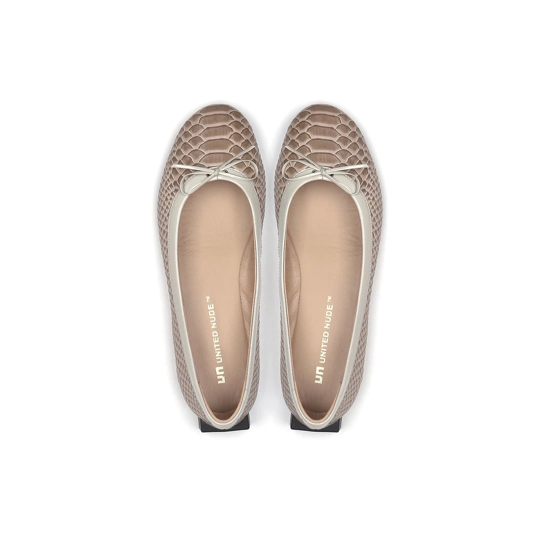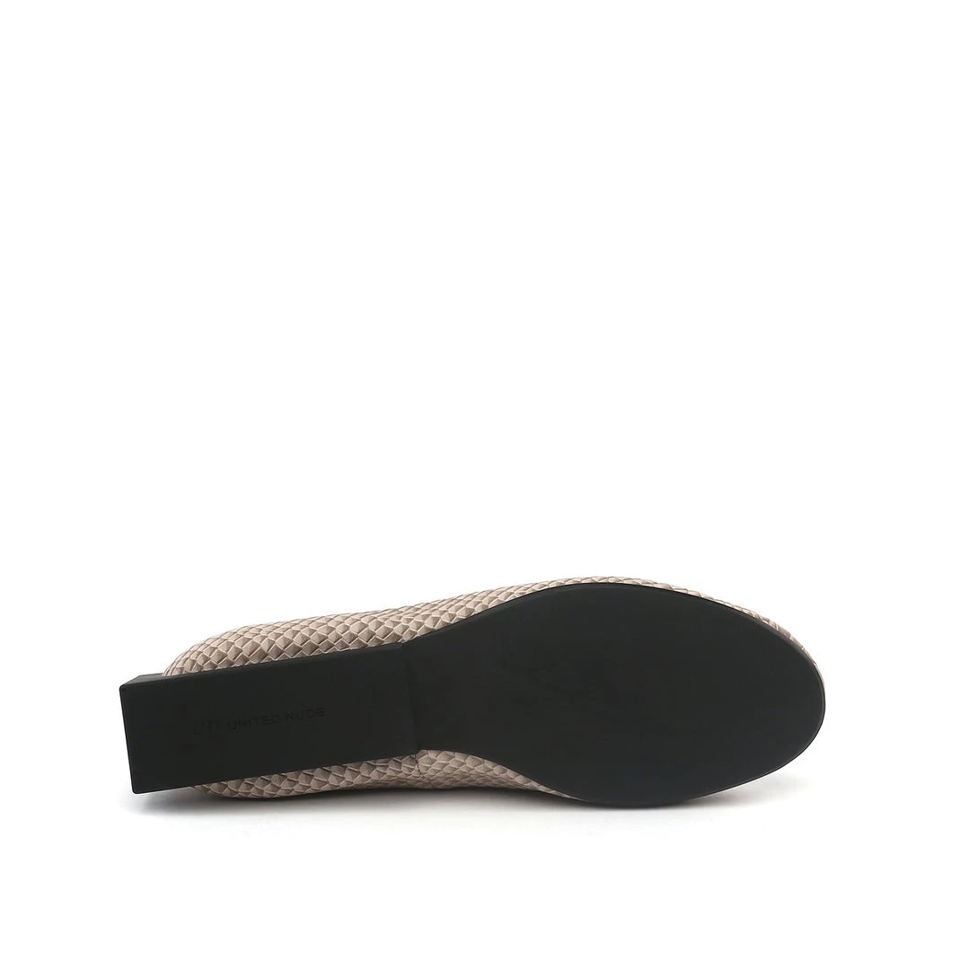 The Block Ballet is a classic ballet flat punctuated by a geometric block heel.