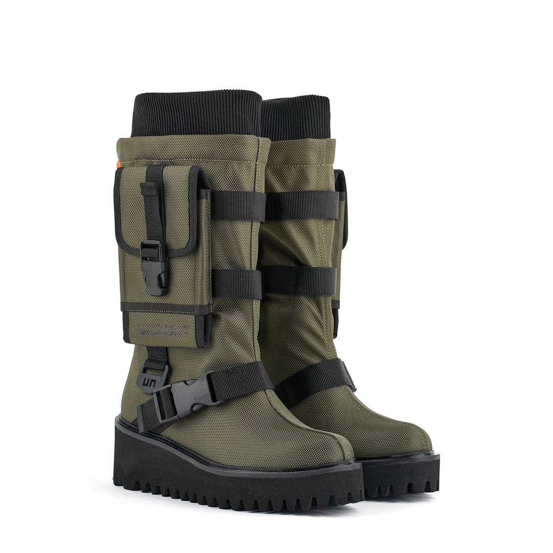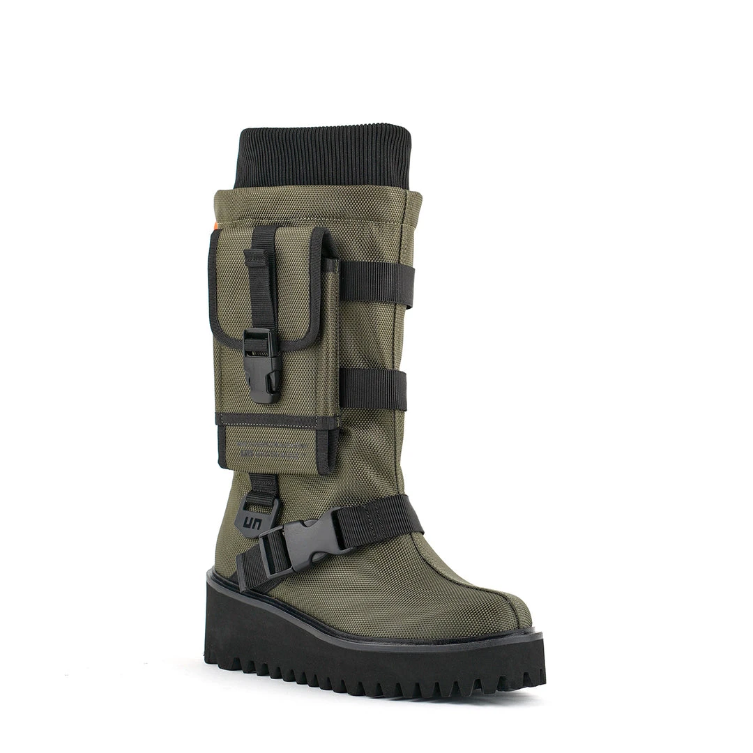 The Combat Pocket is a mid-calf boot featuring fully functional pockets, utility straps, and detachable nylon accessories – adding an element of every day convenience to a daring, yet sophisticated silhouette. A tribute to our signature United Nude pocket boots of the past.