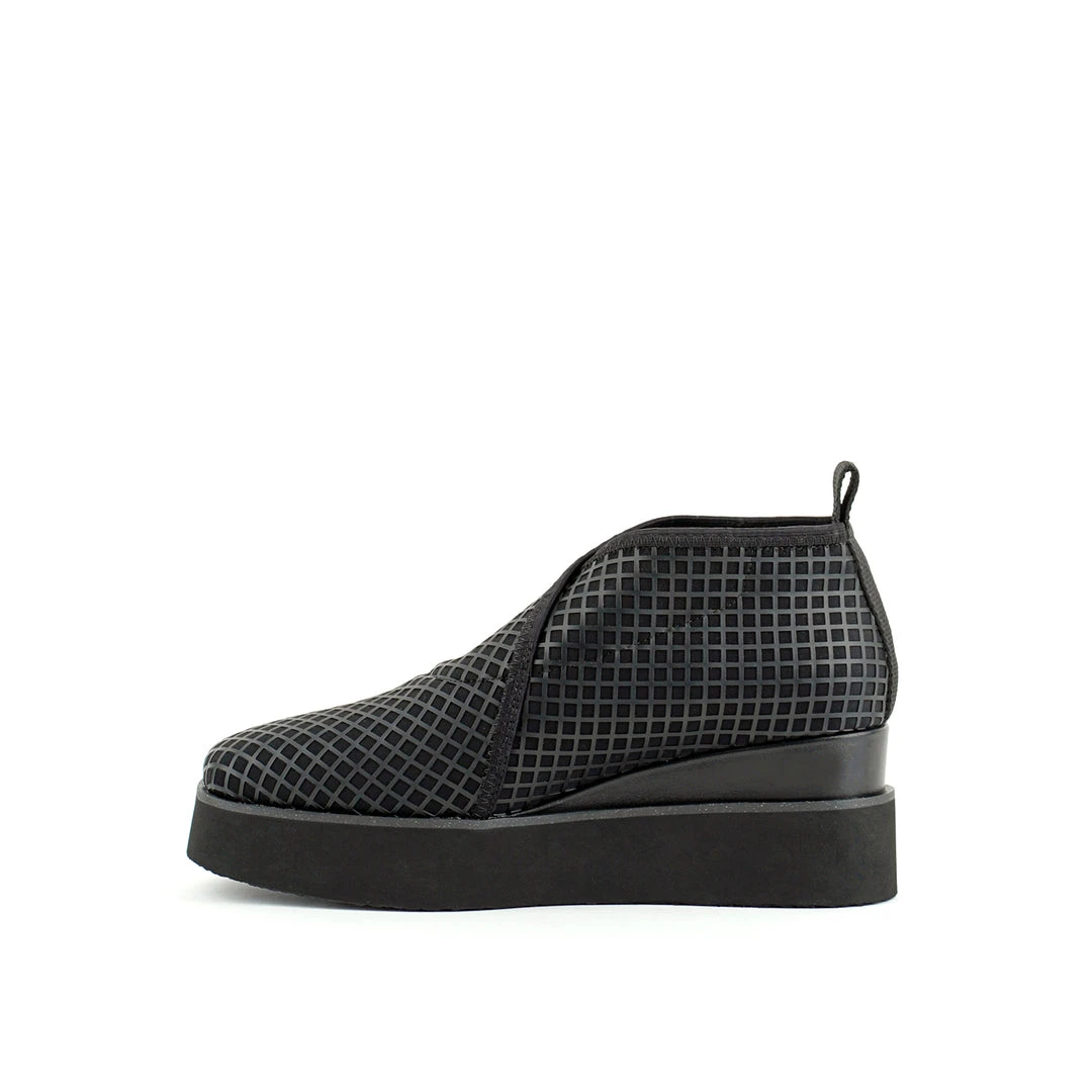 The Fold Stella Lo is an easy slip-on style that combines United Nude’s elasticized upper with a soft square toe shape, leather wedge and textured rubber sole. This style is the ultimate combination of comfort and smart design.