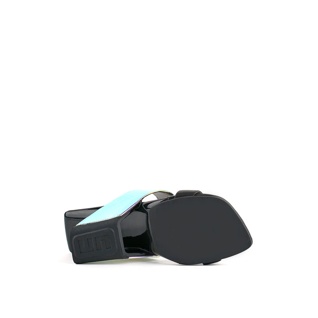 The Loop Hi is a high heel square toe sandal inspired by a loop that encompasses the foot by its upper and heel, giving the effect of floating heel. The expertly designed footbed and elastic on the inner area of the leather strap provides a comfortable and secure fit.