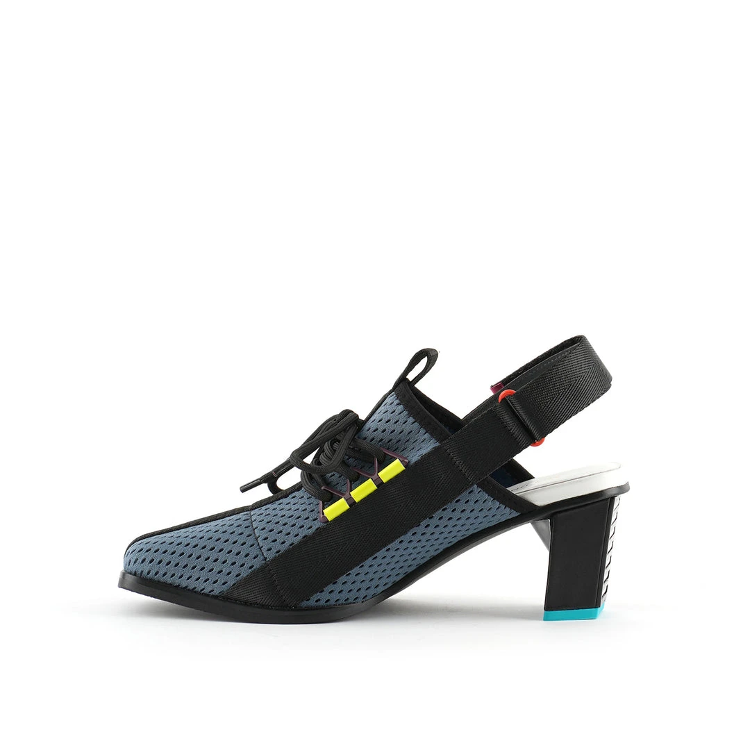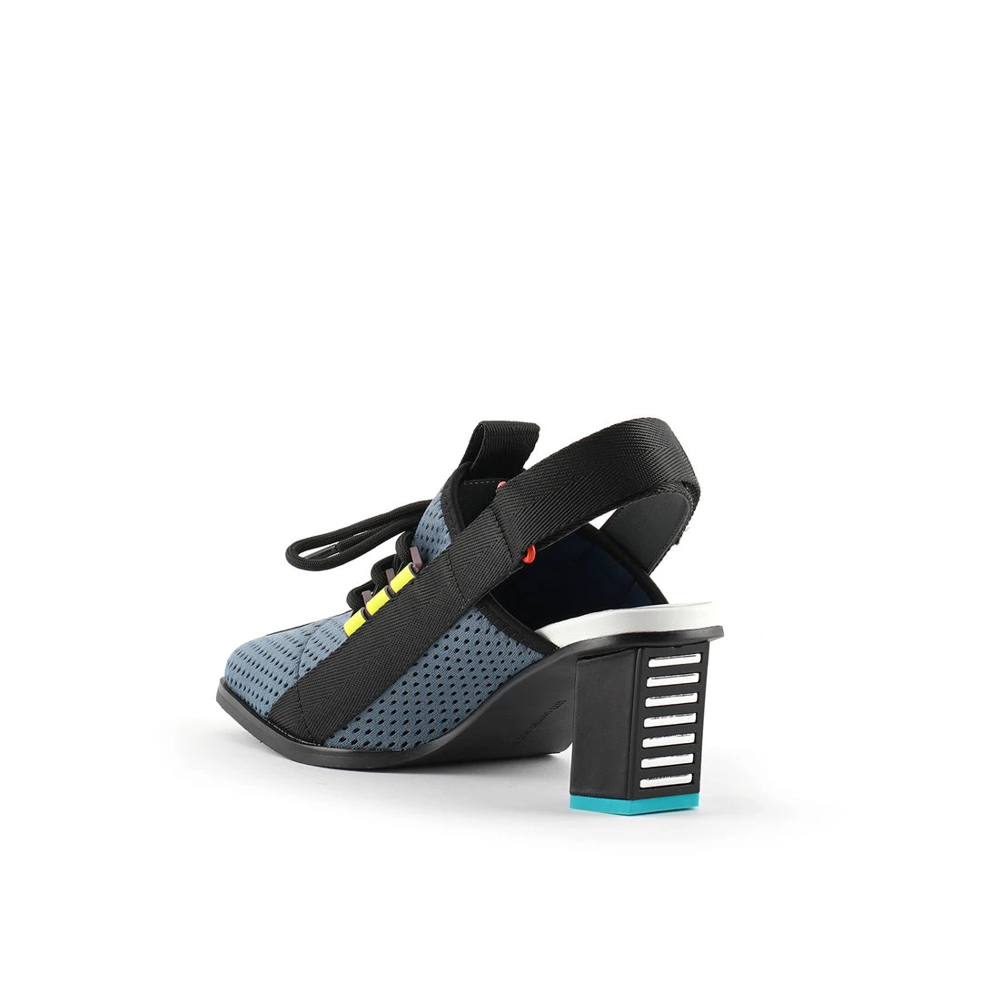 The Lora Mid is a hybrid sneaker-heel featuring a pointy toe, mesh upper and stretch closure at the heel. This mule combines a trendy style with sporty elements.