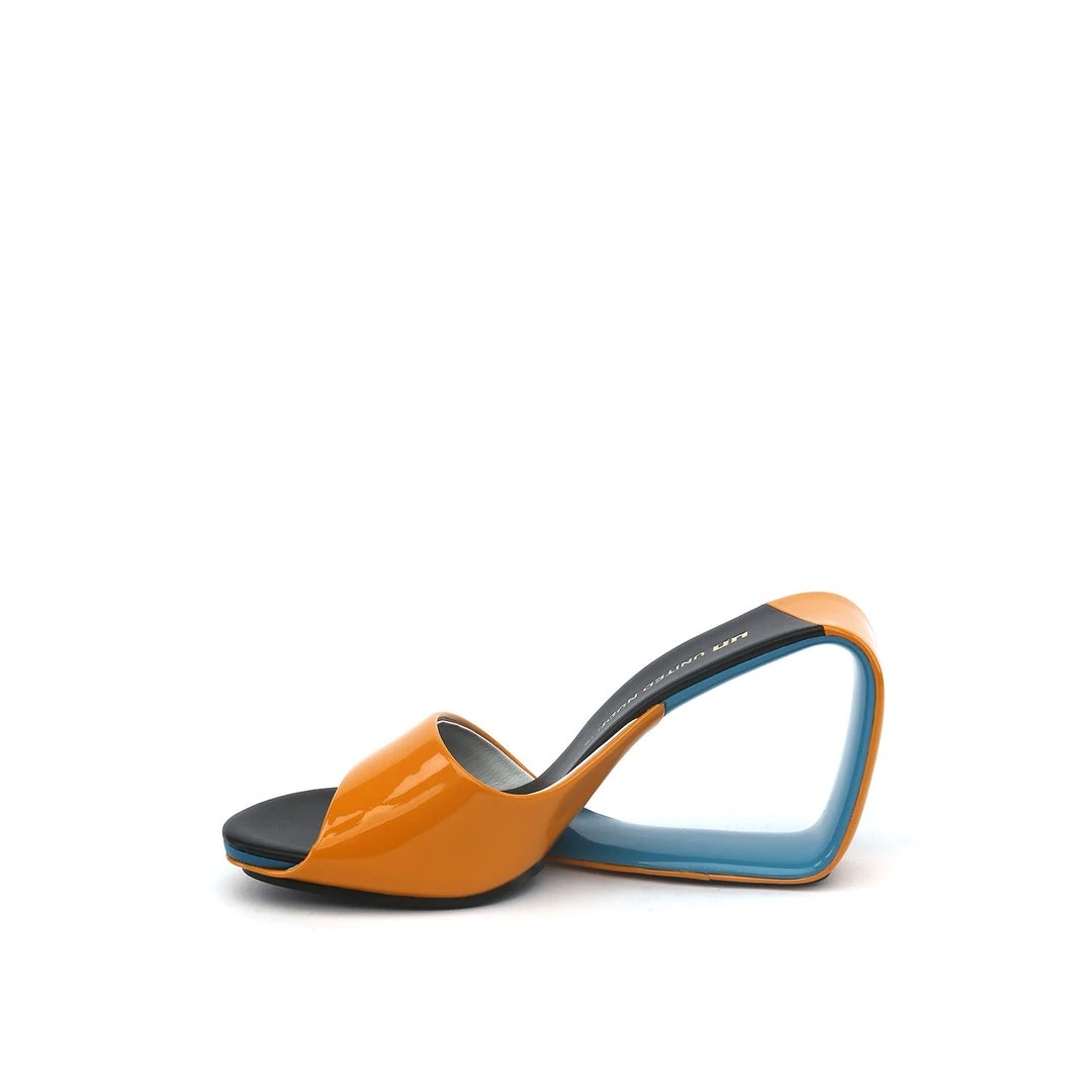 The Mobius Hi is a lightweight, open-wedge high heel made from fiber-reinforced nylon. A single band forms the sole, heel, footbed and upper of the shoe.