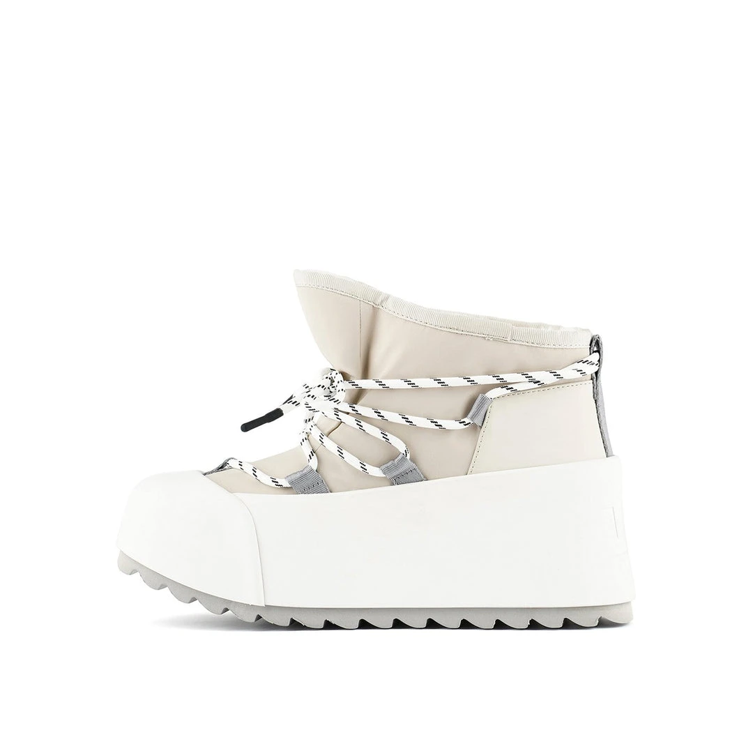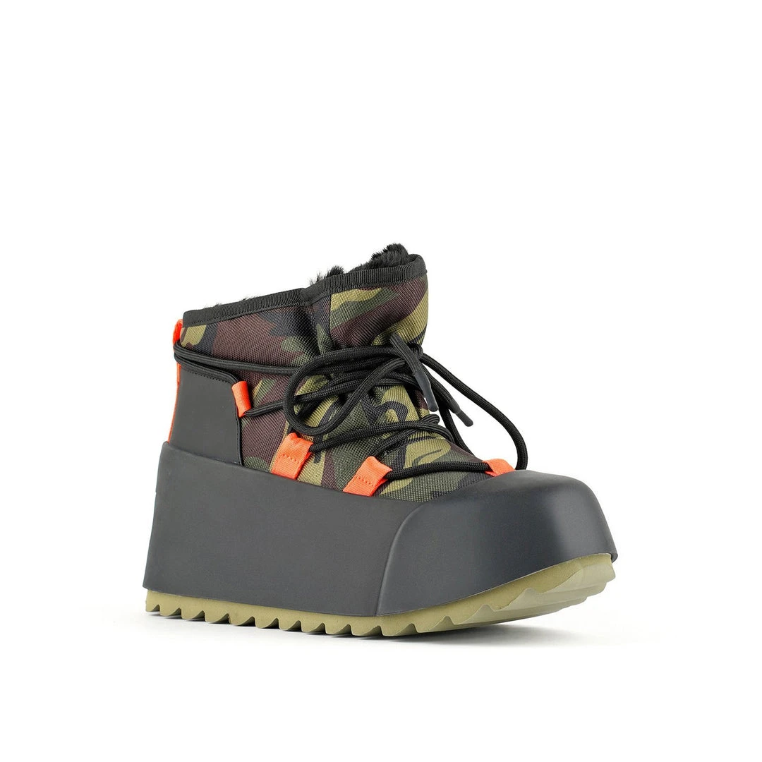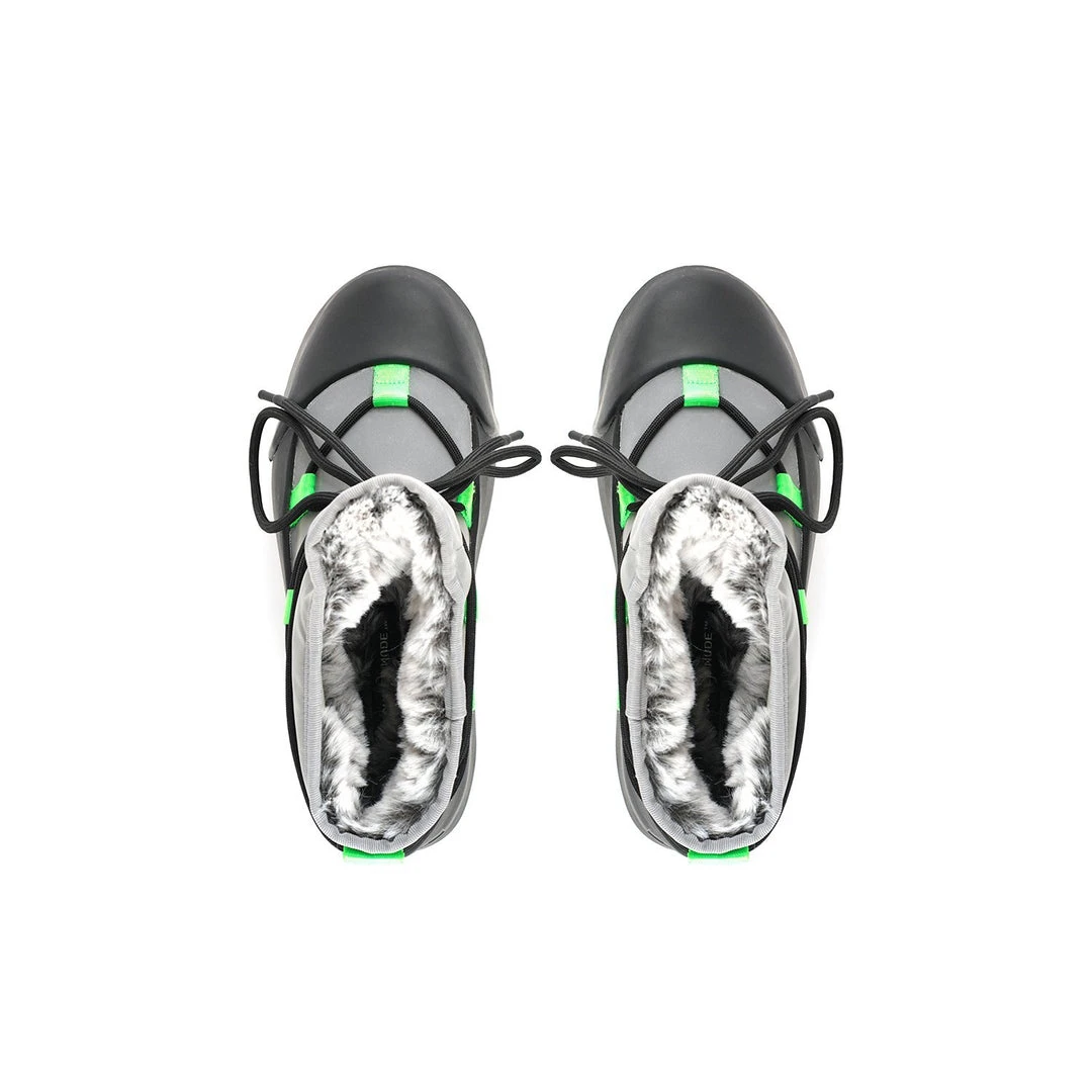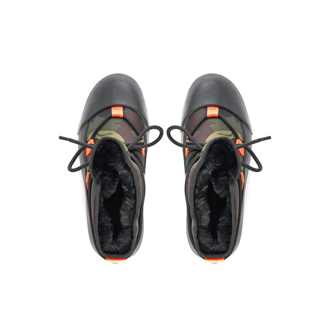 The Polar Bootie is cold weather bootie. A dominating waterproof outsole grounds the adjustable upper with a plush eco fur lining.