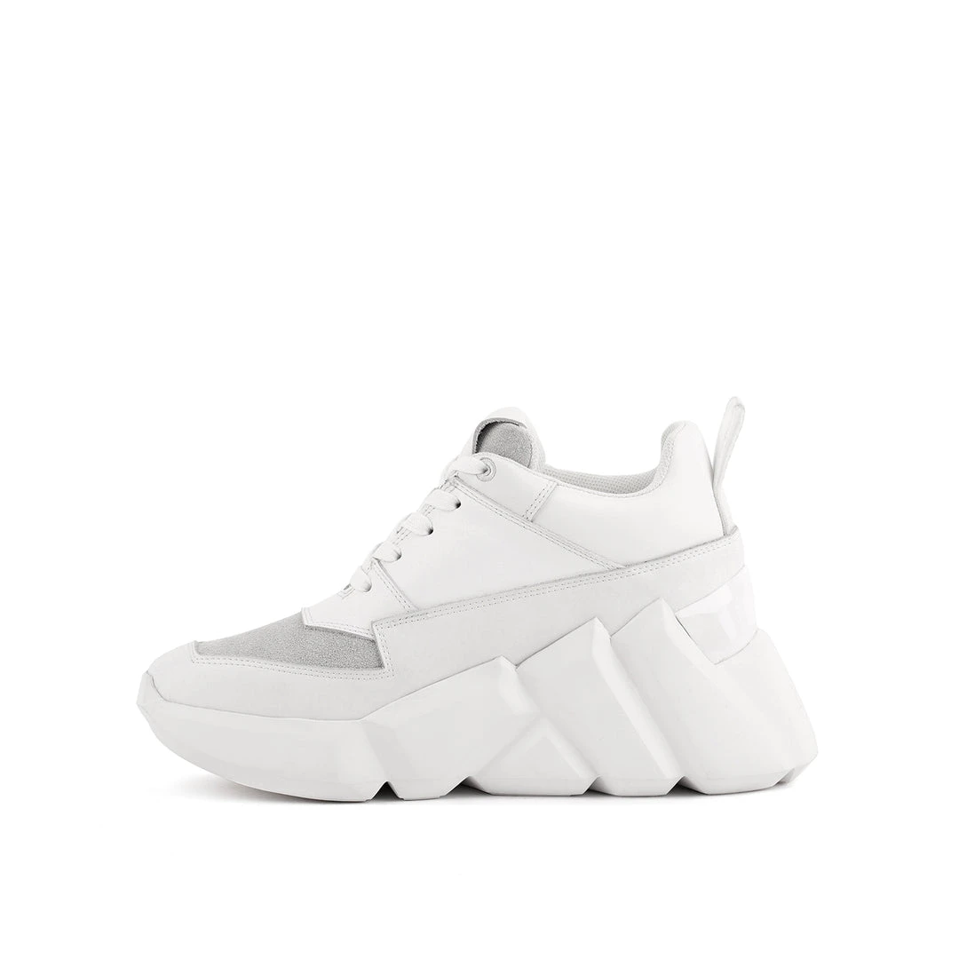 The Space Kick Max is United Nude’s signature twist on retro-athletic sneakers. The AW21 edition of this ongoing silhouette is fully fabricated in premium leathers, graphic detailing, and sits on a thick rubber outsole providing comfort to the wearer. Leather lace loops, double stitching and complimentary leather embossed branding elevate the silhouette – bridging luxury and affordability.