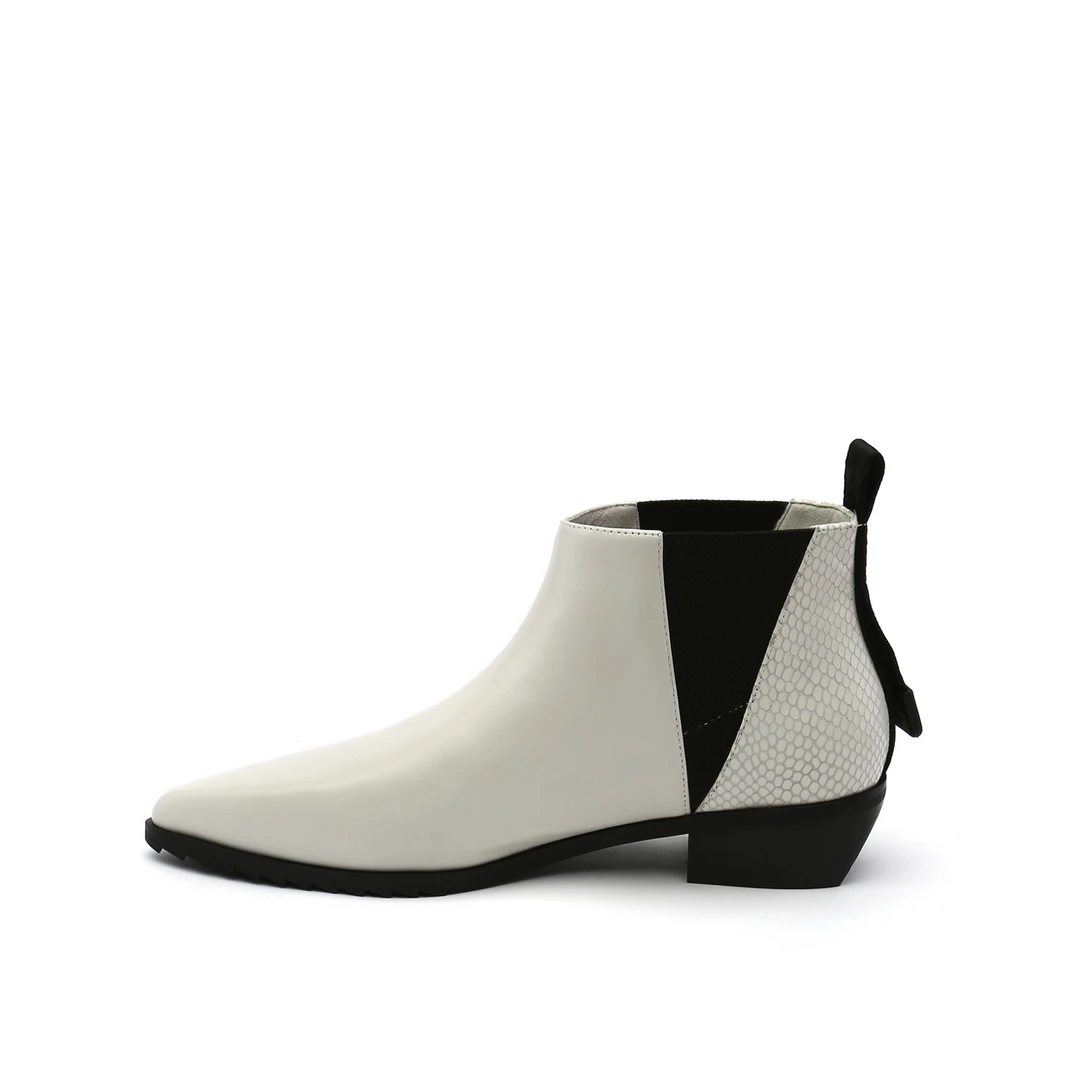 The Tek Bootie Lo is a pointy-toe flat ankle bootie designed to elevate your everyday look.