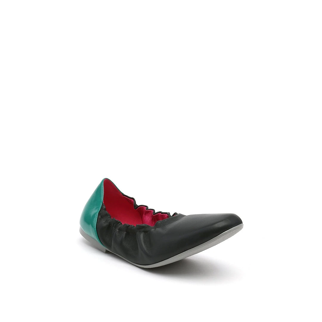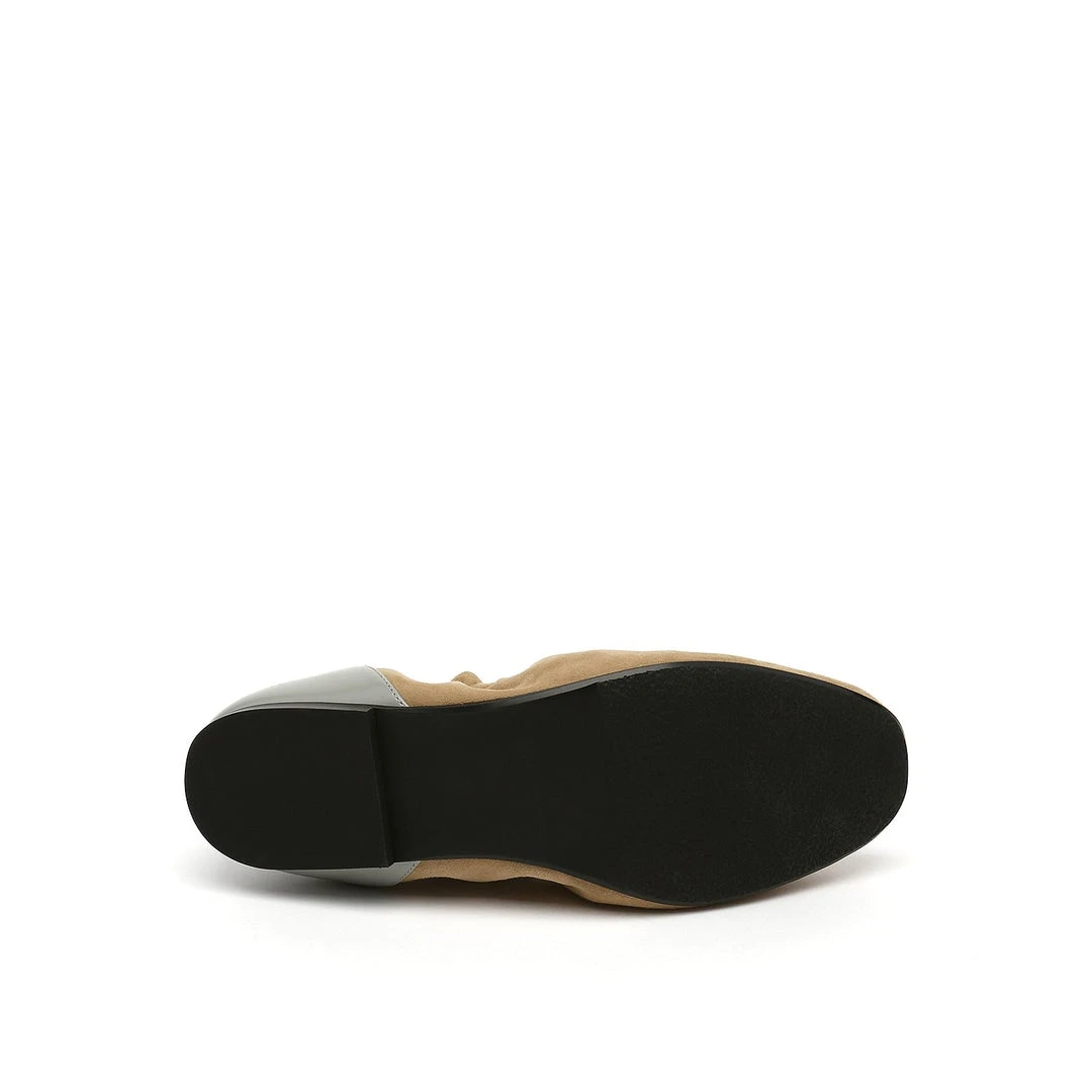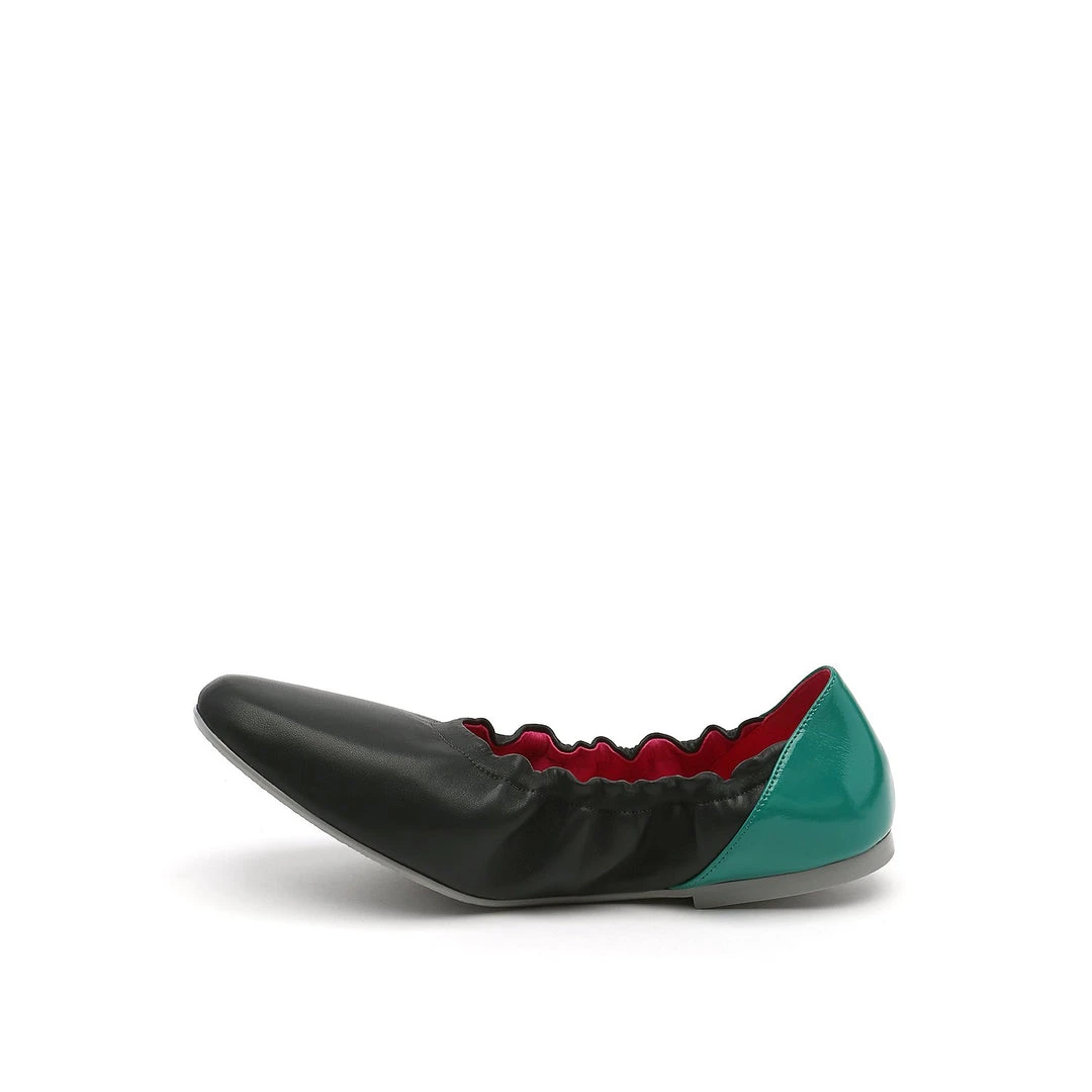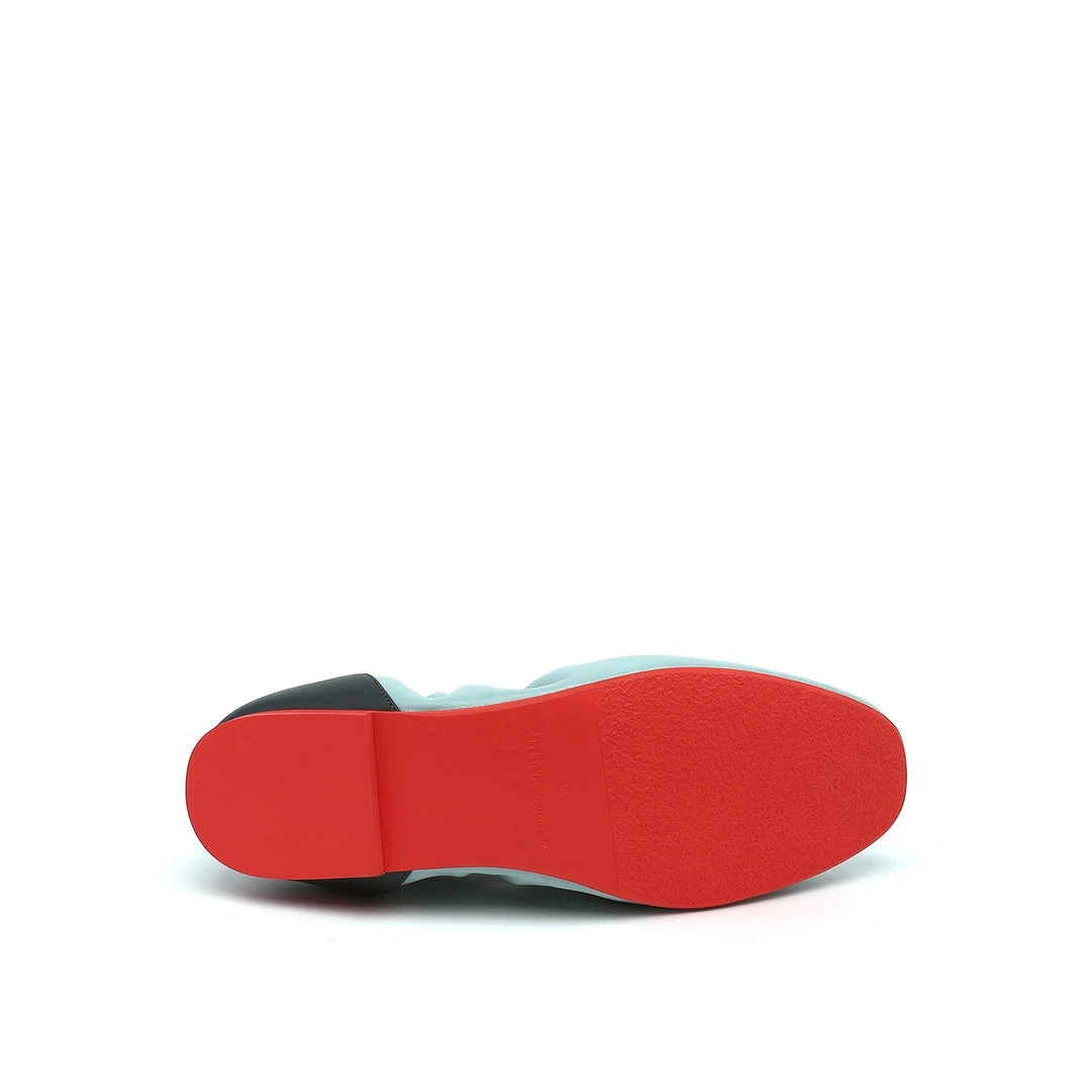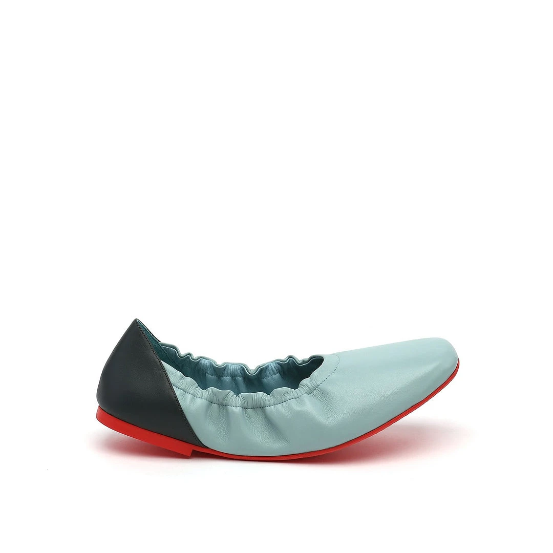 The Delta Ballet is a squared toe, bicolor flat constructed with buttery-soft leather.