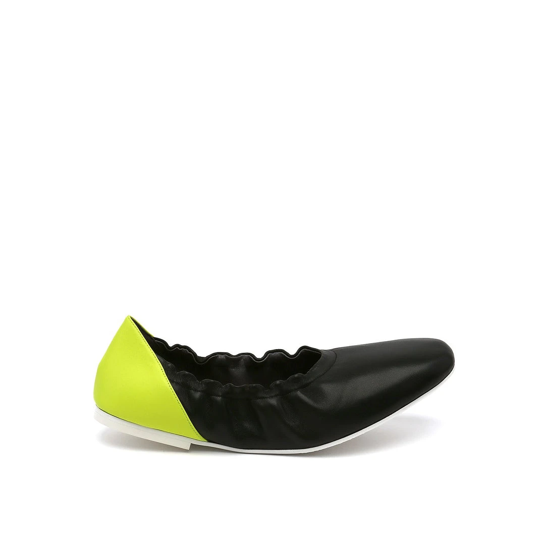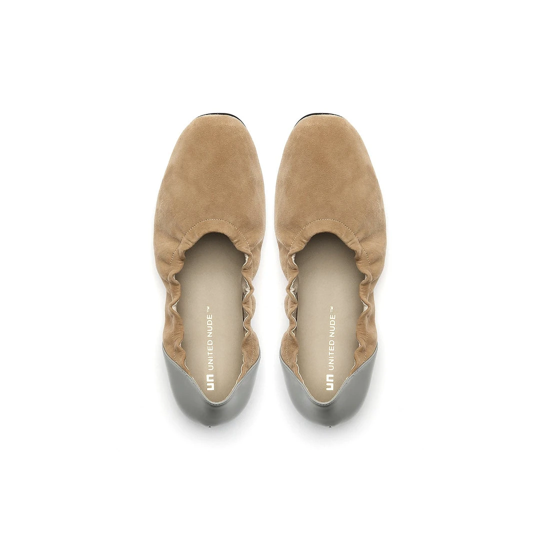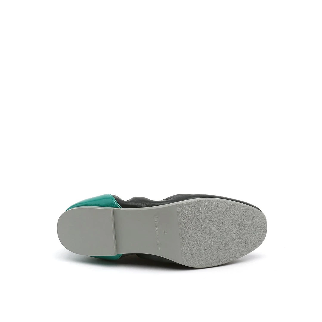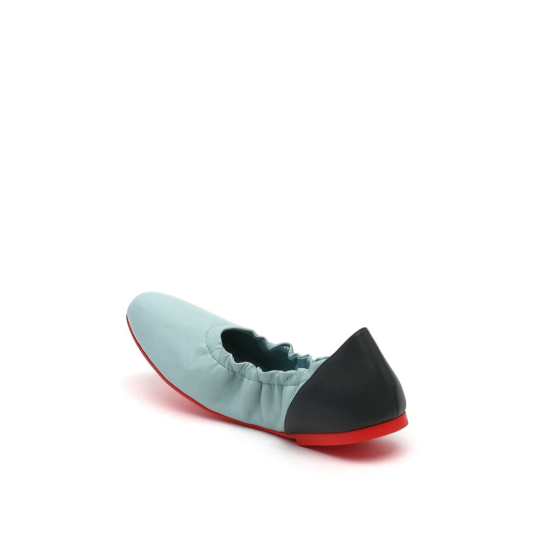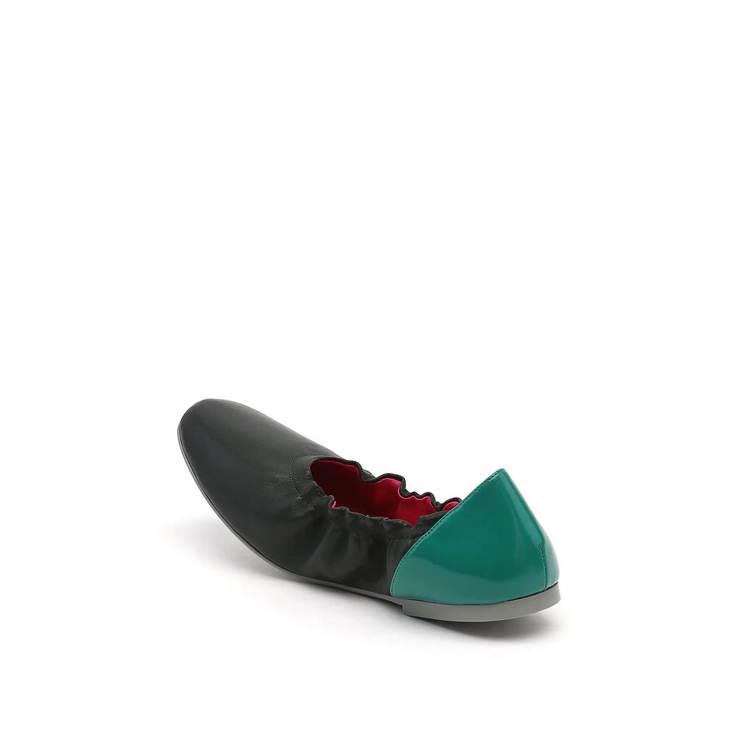 The Delta Ballet is a squared toe, bicolor flat constructed with buttery-soft leather.