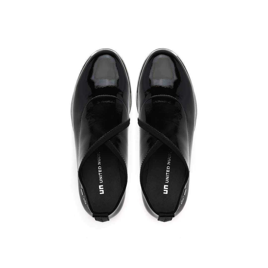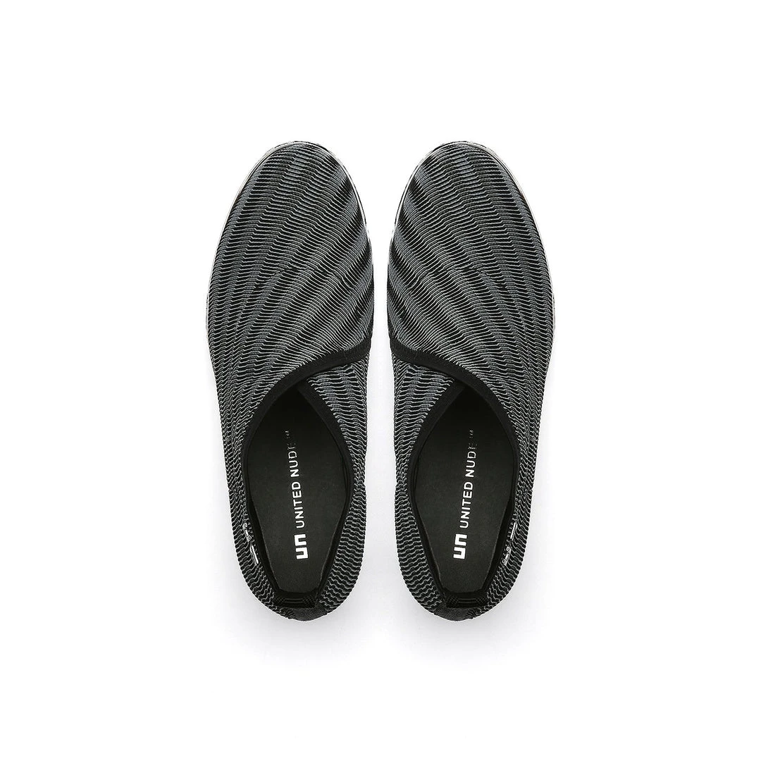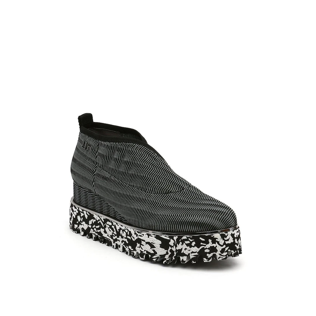 The Fold Casual II is a flatform slip on with an asymmetrical topline and cleated platform outsole. An exposed wedge adds a gentle lift to these metallic trimmed shoes.