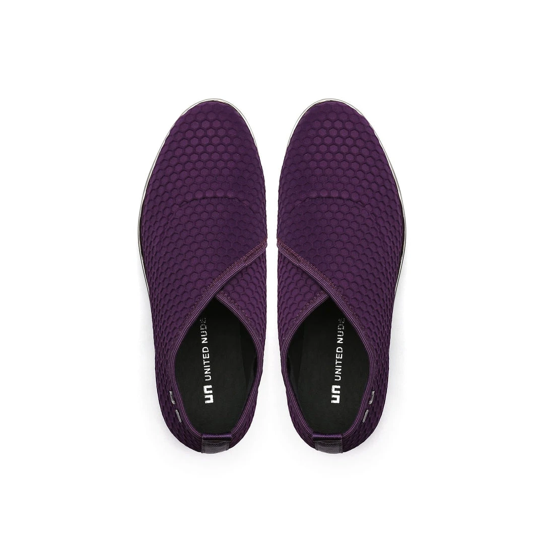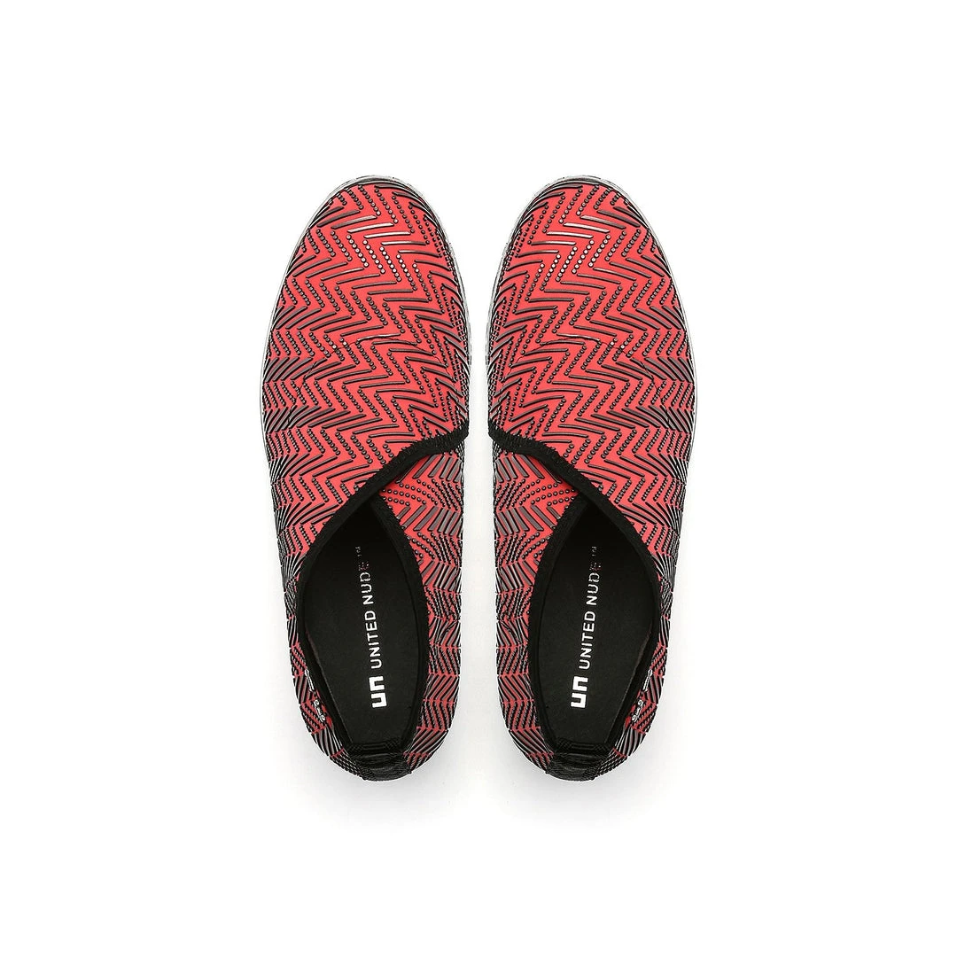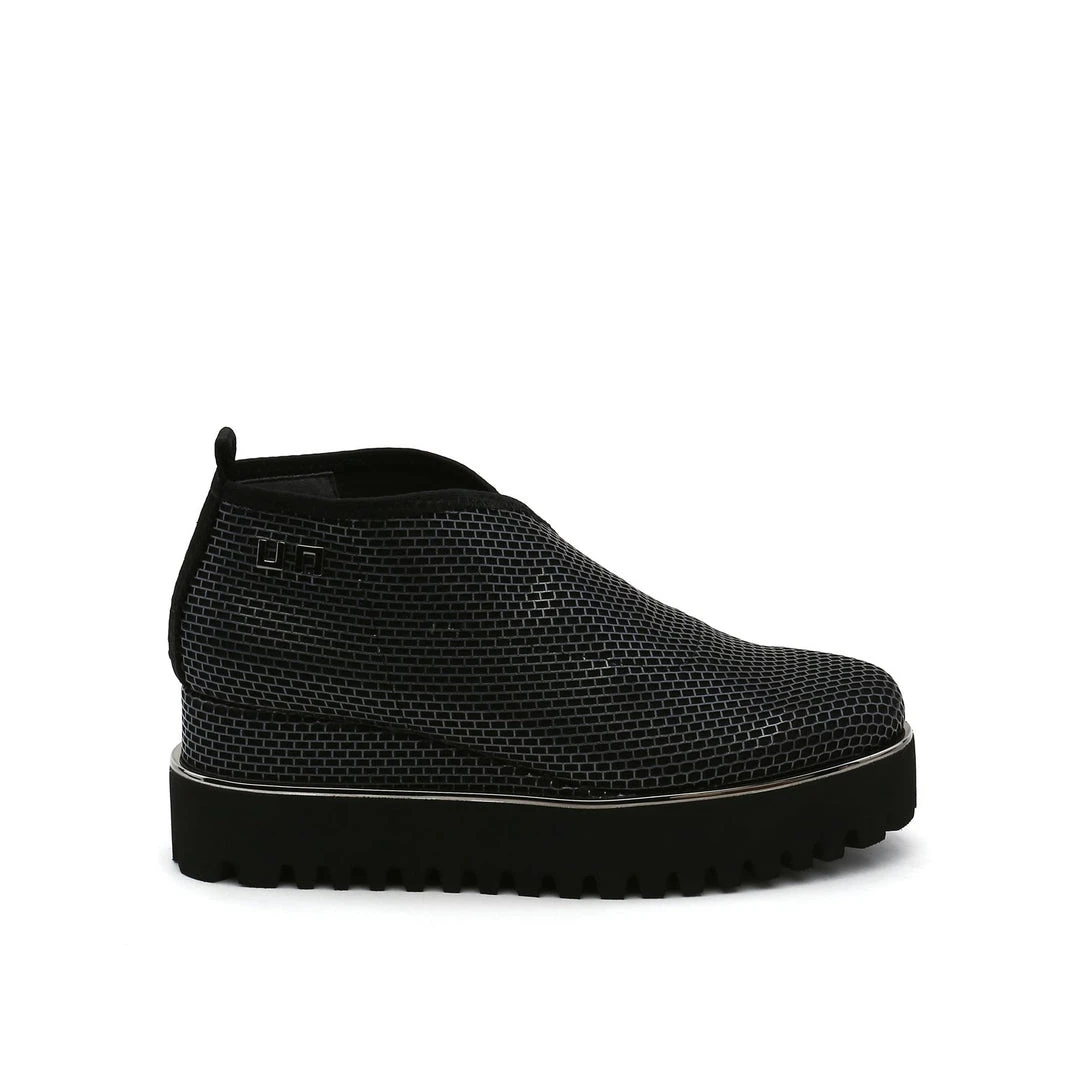 The Fold Casual II is a flatform slip on with an asymmetrical topline and cleated platform outsole. An exposed wedge adds a gentle lift to these metallic trimmed shoes.