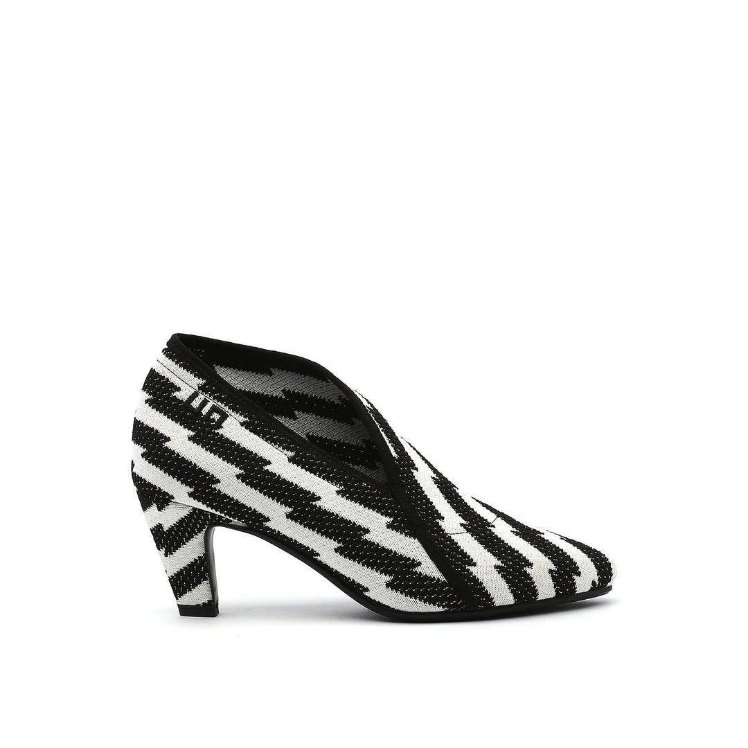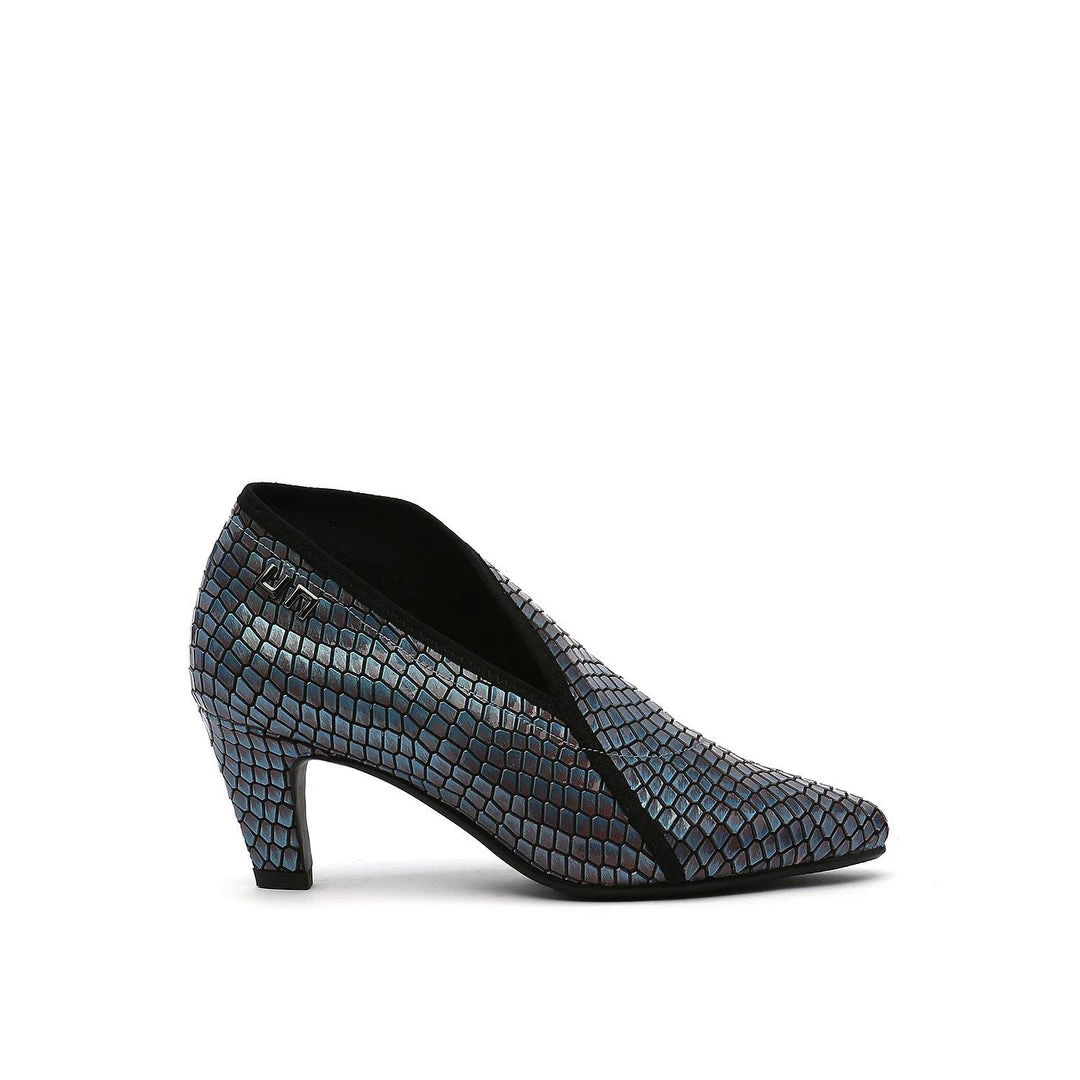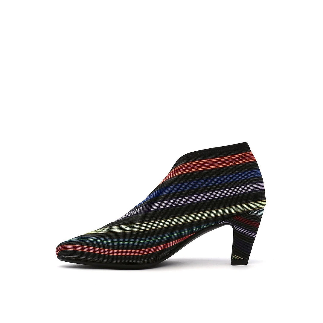 The Fold Lite Mid is a mid-heel ankle bootie with a soft almond toe and asymmetrical topline.