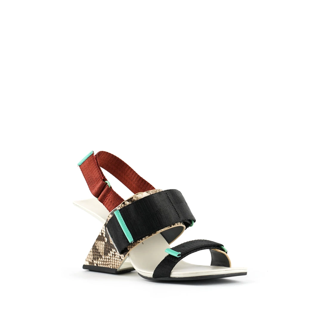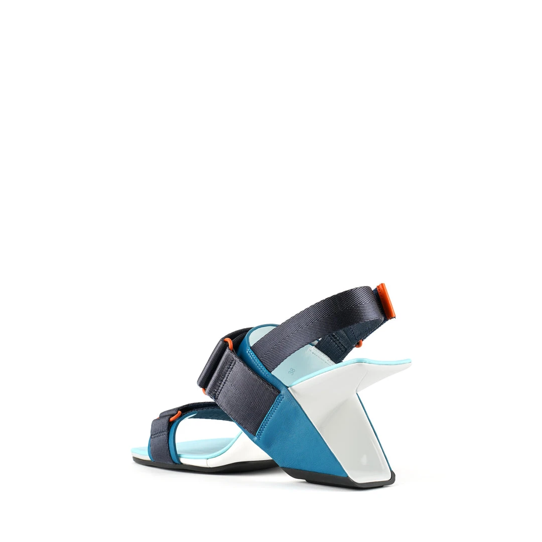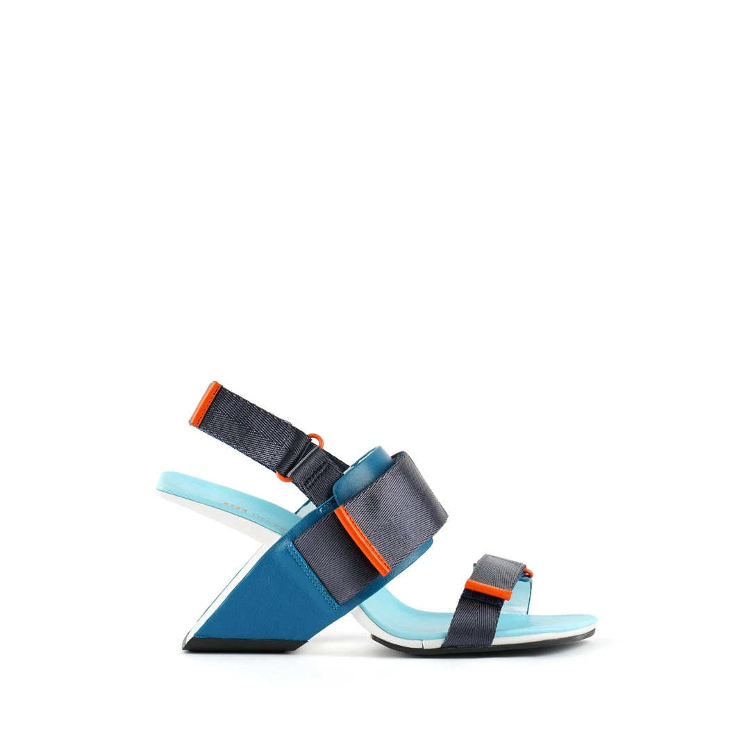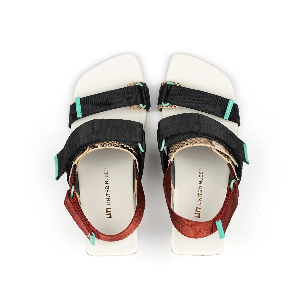 The Loop Run features UN’s signature cantilevered Loop Hi heel. Three adjustable nylon + velcro strap enclosures offer utility and an optimal fit to the updated minimalist sandal.