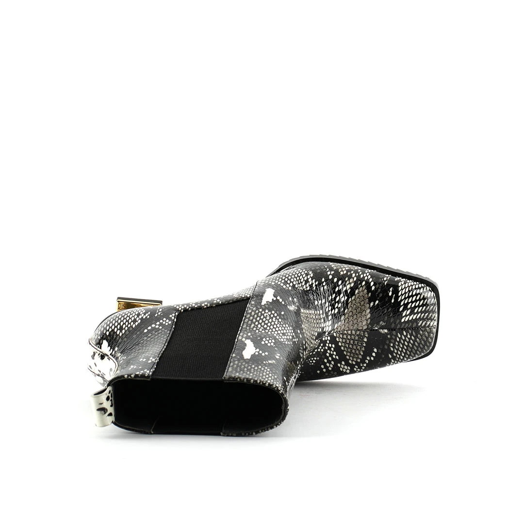 The Tool Chelsea mirrors the utilitarian look of multitools whilst offering comfortable and stable wearability. This geometric Chelsea boot is made of tumbled leather in a square toe shape with leather rand. This style is part of the Art Group collection, representing simple upper silhouettes combined with carefully designed heels that speak to United Nude’s bold aesthetic.