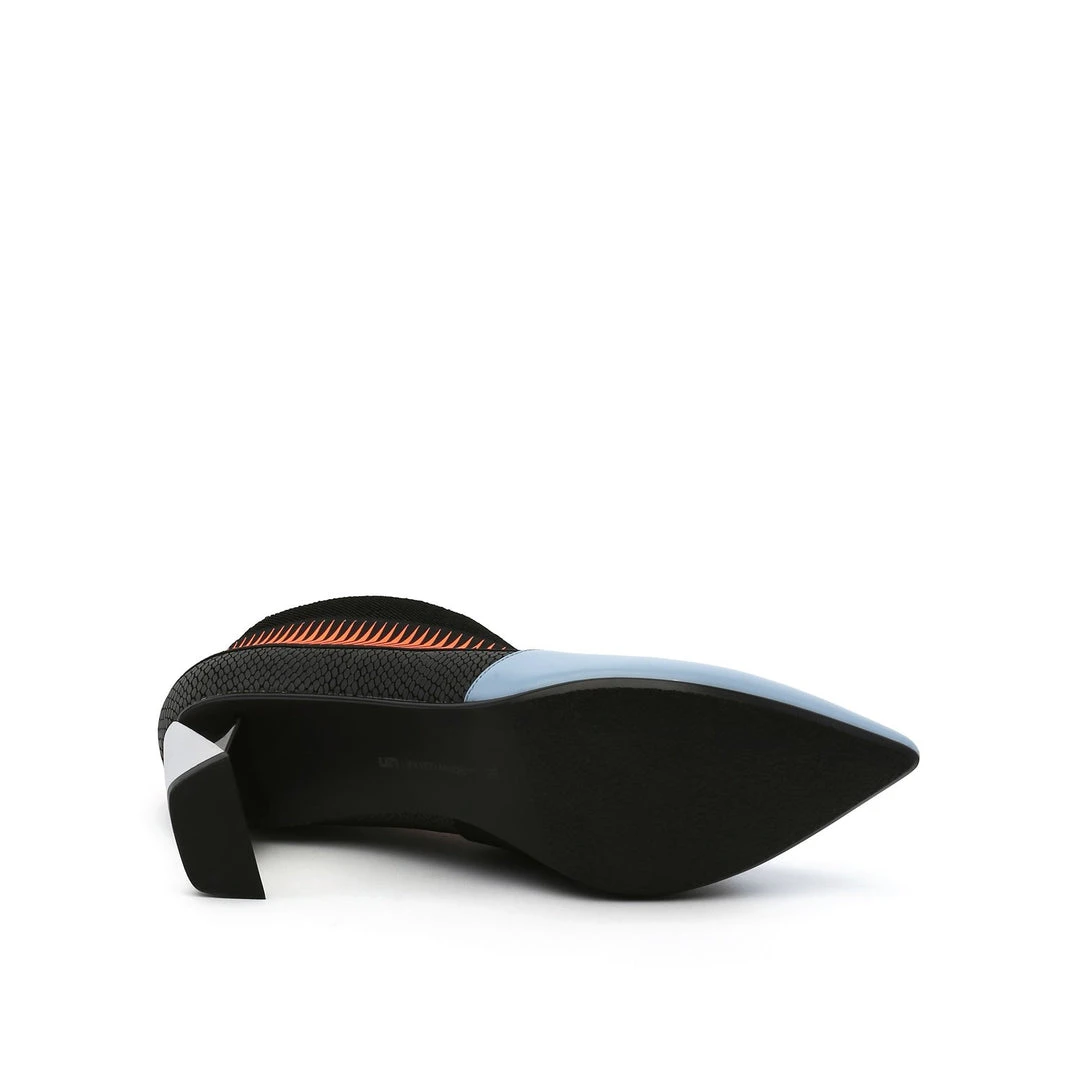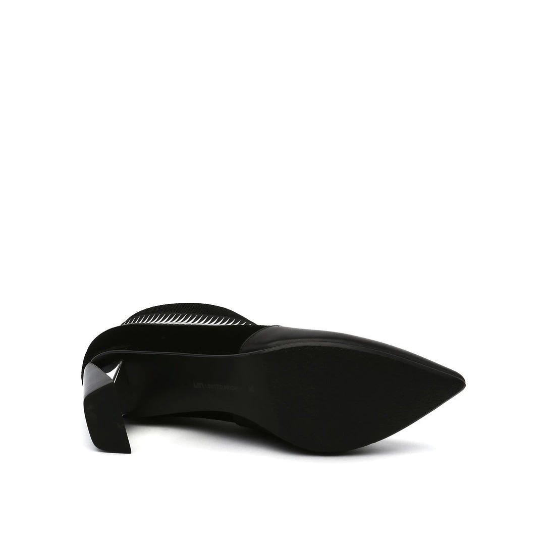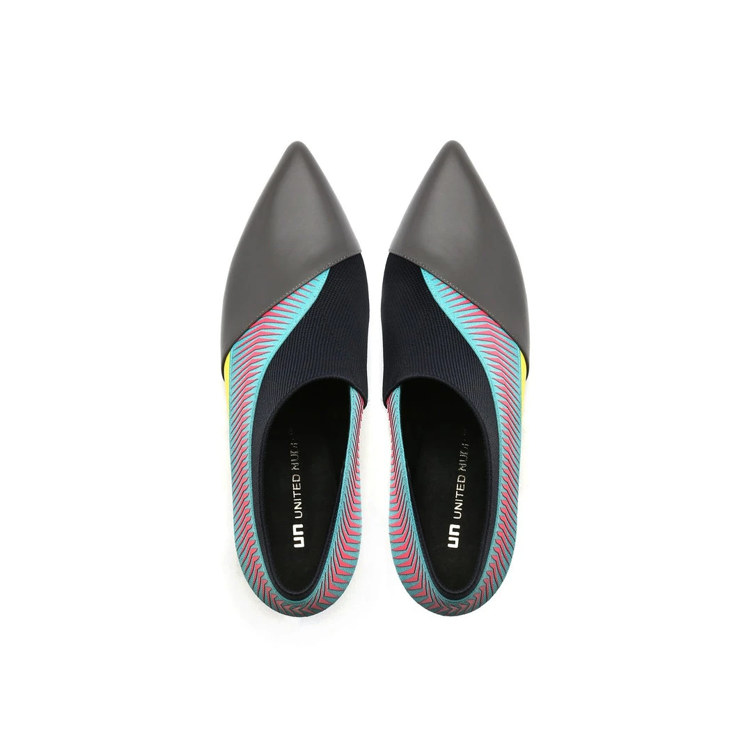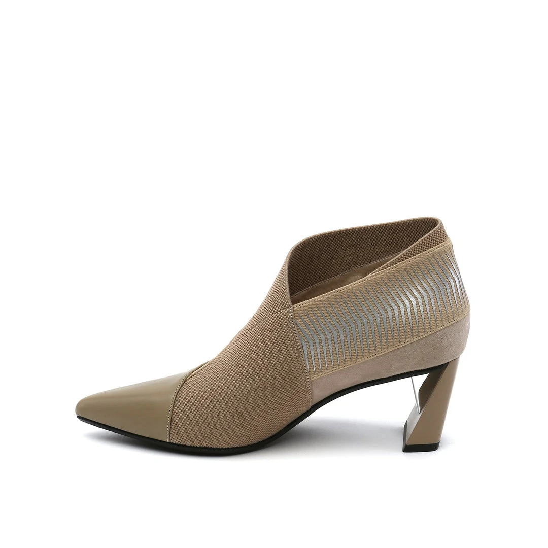 The Zink Pop Mid is a mid height pointy-toe ankle bootie that is energized with a graphic elastic band that encapsulates the foot.