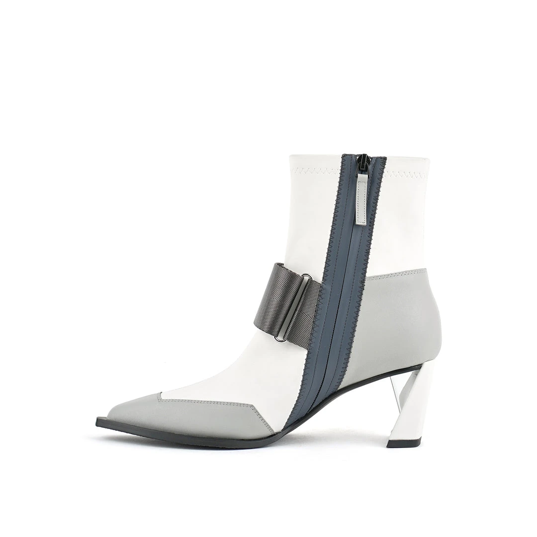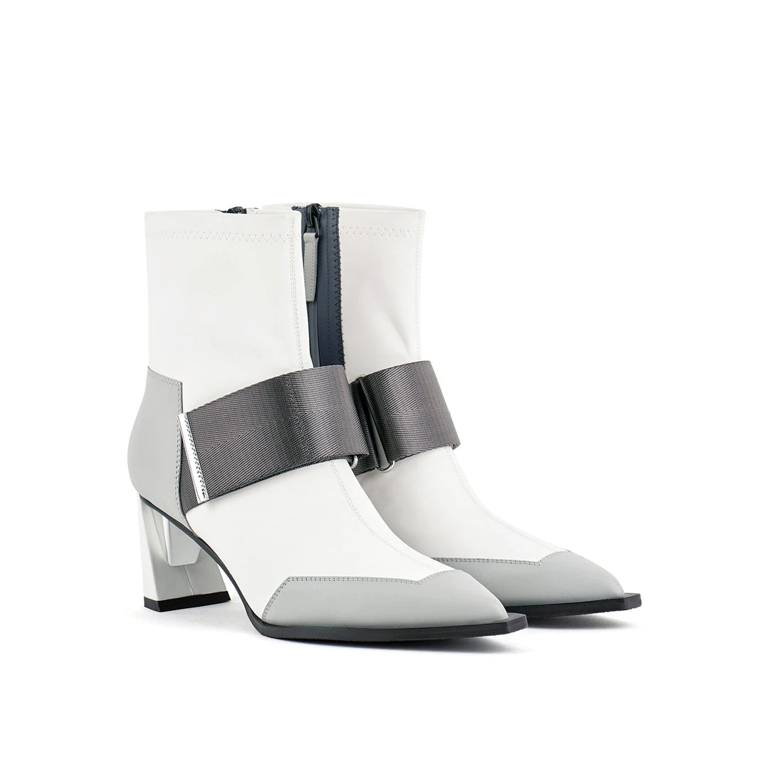 The Zink Run Bootie Mid features activewear and utility inspired elements atop a mid-level heel. Adjustable straps, sporty zips, and a pointy toe make up this laid-back, easy-to-wear bootie.